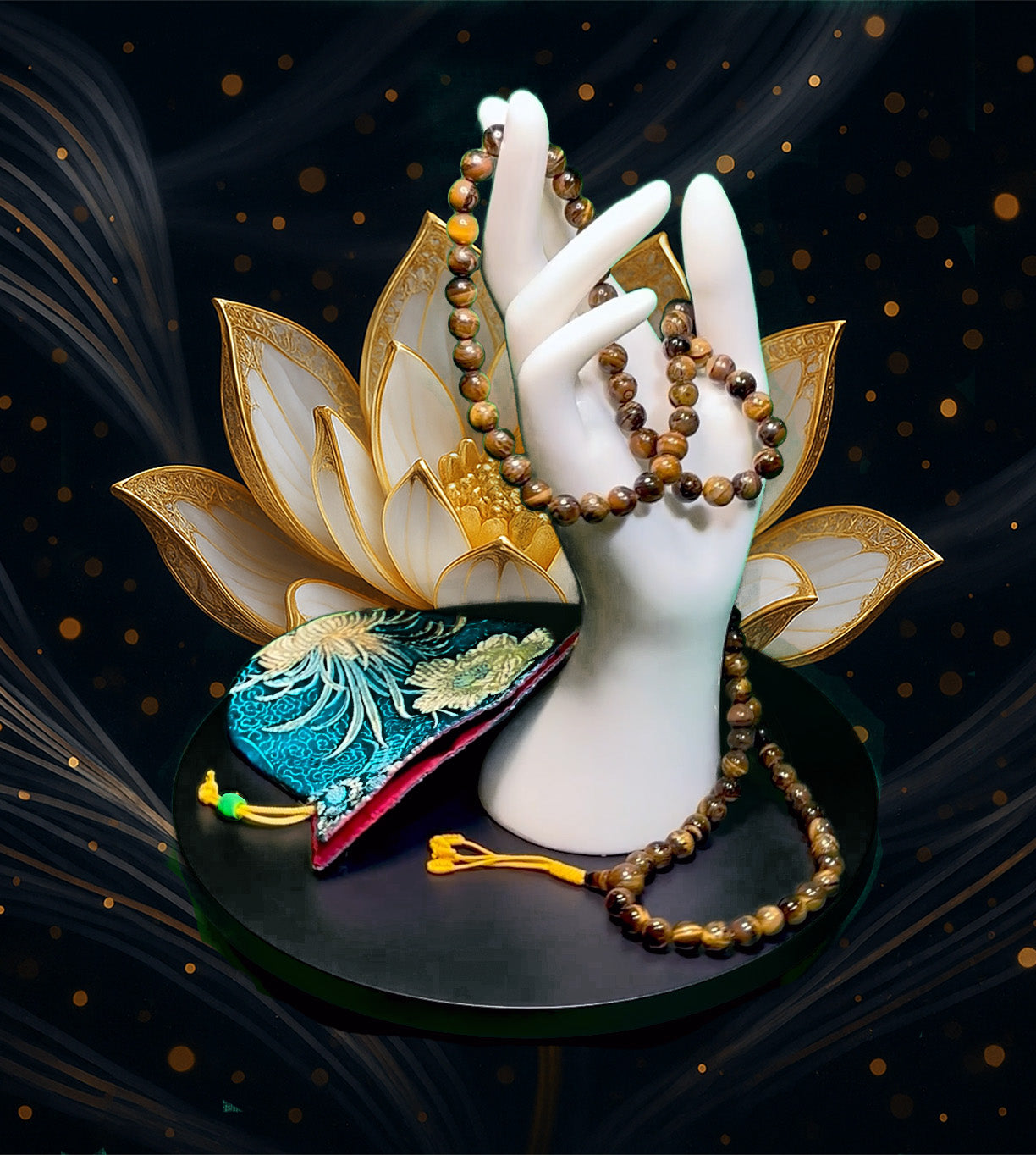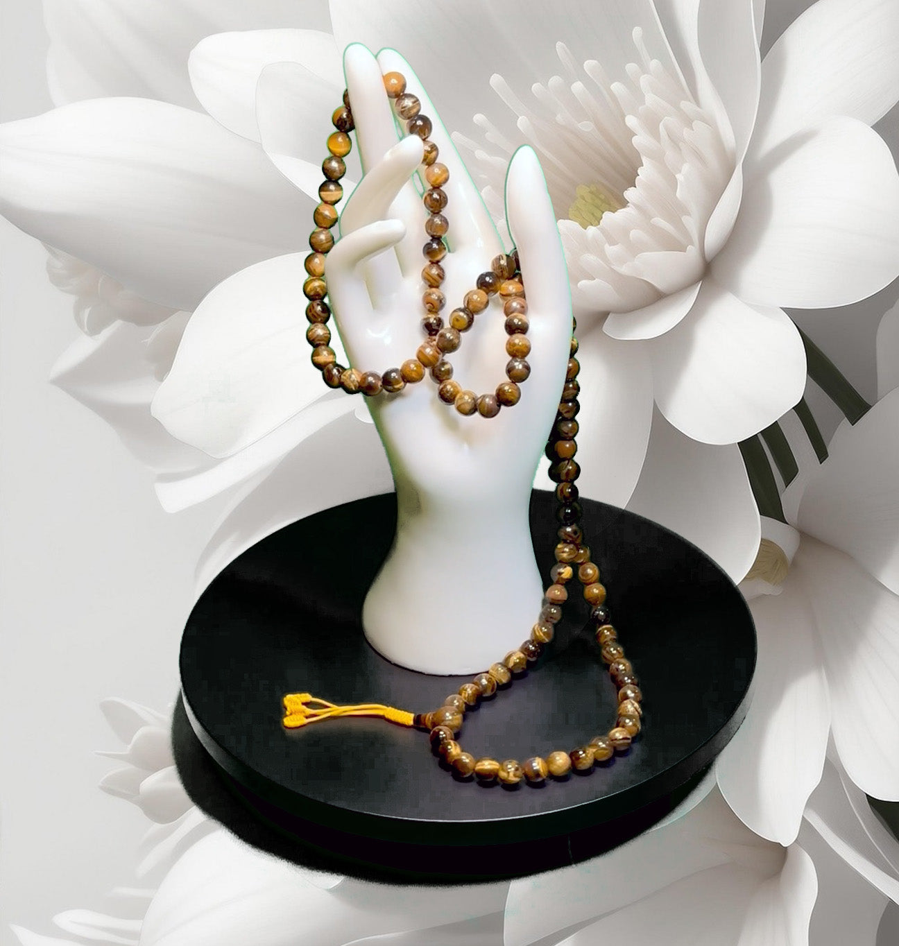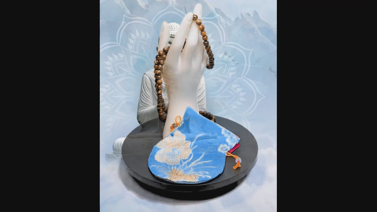 HAND MADE TIGER'S EYE FANCY 108 8mm BEAD MALA WITH GURU BEAD AND TAIL